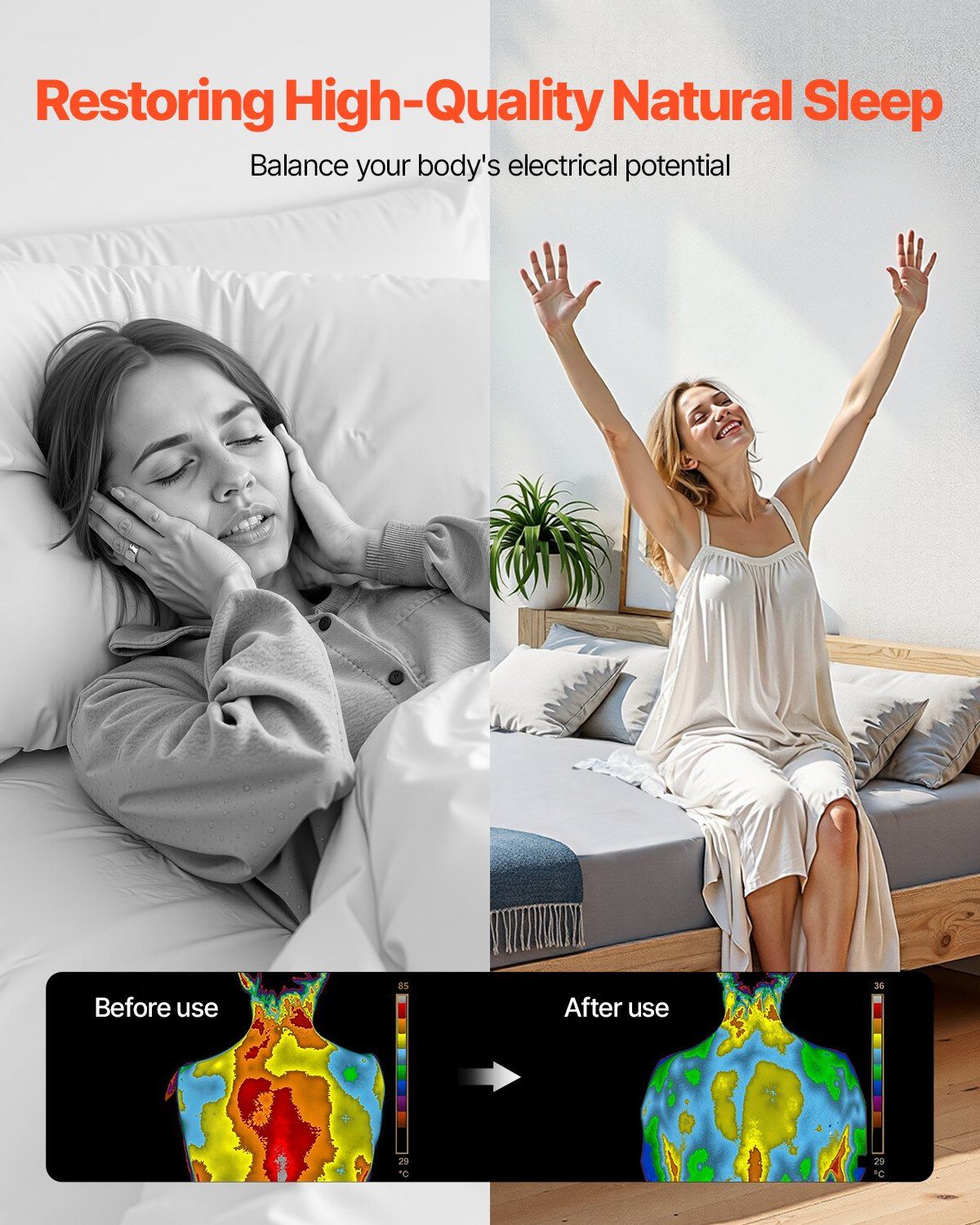 1.Experience Natural Sleep: Enjoy a peaceful night's sleep with our grounding sheet. It gently releases static electricity from your body to the Earth through a grounding cord. Say goodbye to restless nights and hello to improved sleep quality and reduced fatigue
