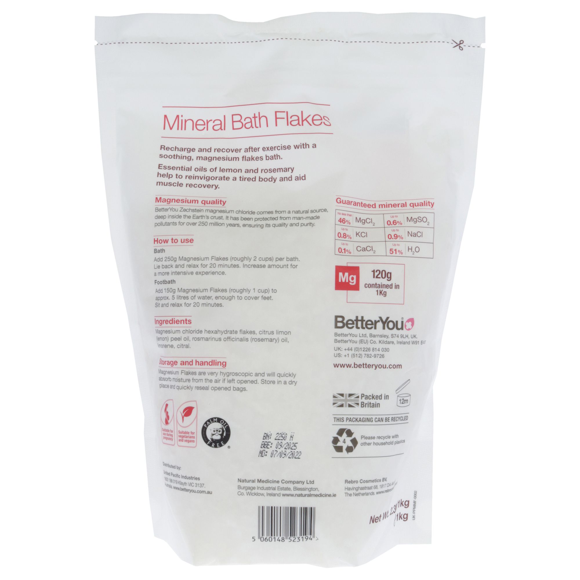 Magnesium bath flakes, sometimes called magnesium bath salts, are a highly concentrated form of magnesium supplementation, designed to be added to a bath or footbath. Soaking in a magnesium-rich bath helps promote relaxation and soothe tired and aching muscles. Allowing full body exposure to a concentrated solution of magnesium chloride. A gentle and effective method of supplementation. Help recharge and recover after exercise with a sports supplement soothing magnesium flakes bath.